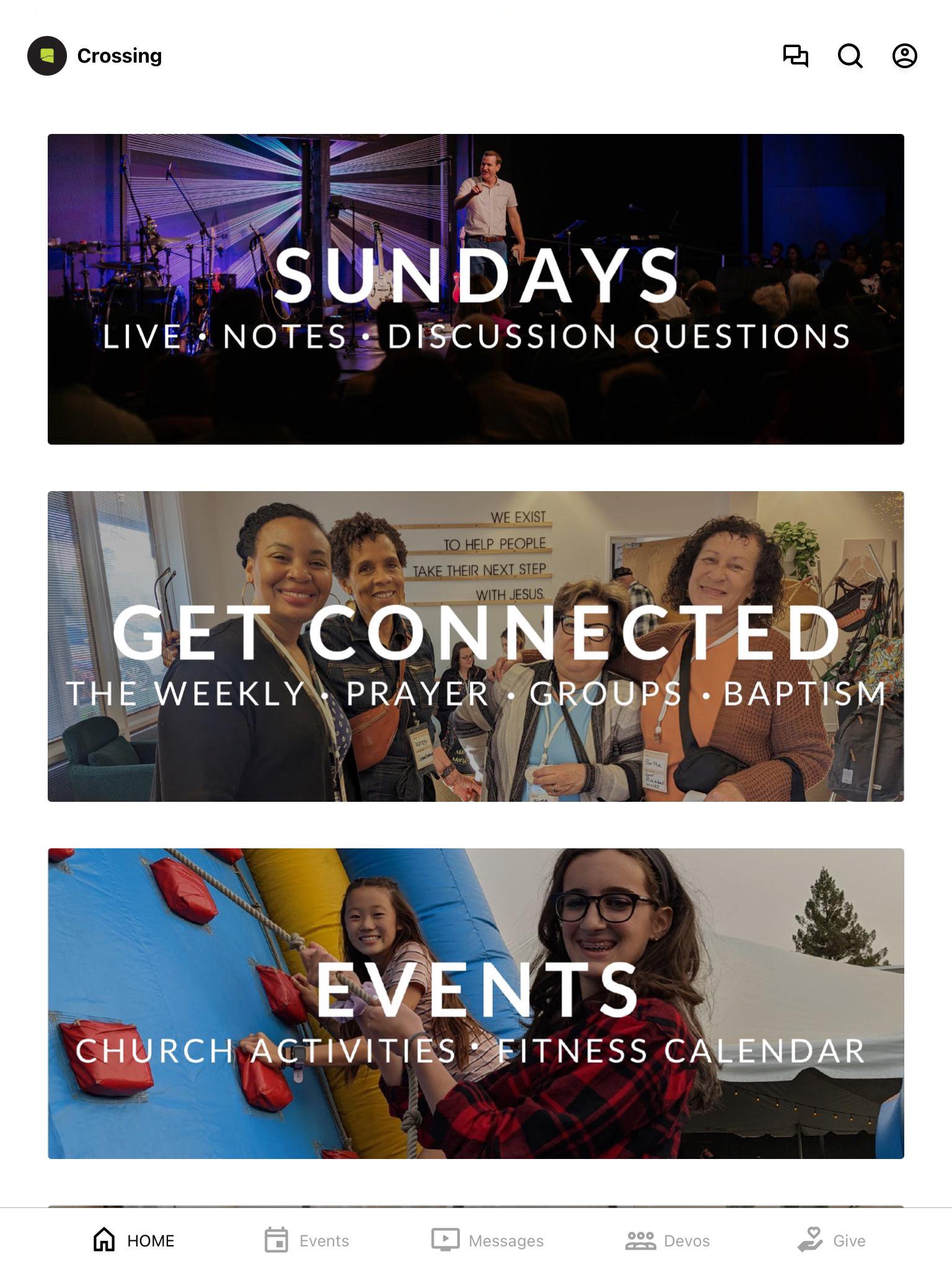 Stay informed and connected with The Crossing Church: - Watch or listen to past messages - Find opportunities to get involved with groups and service - Engage with Bible reading and message notes We grow more in community and this digital community will help you take your next step with Jesus.