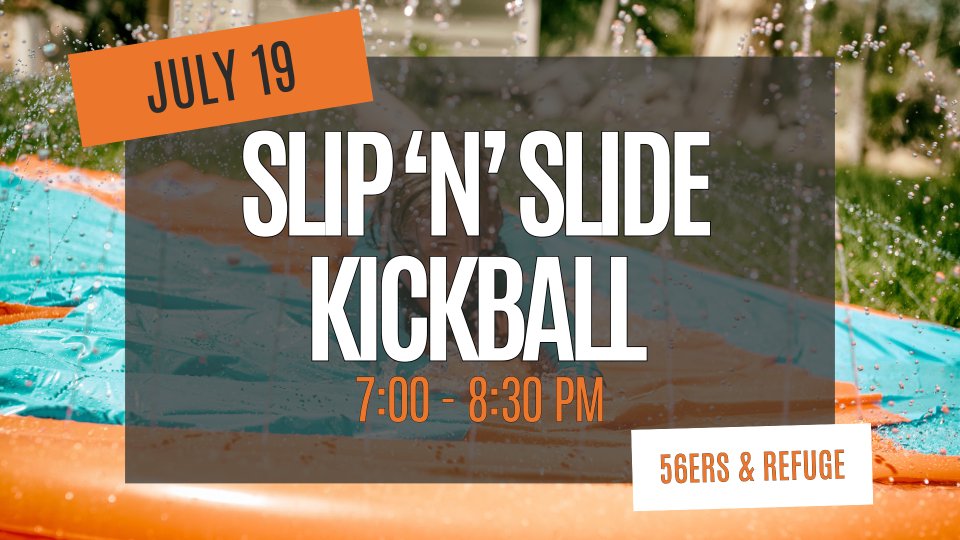 Join us for a fun game of slip-and-slide kickball in the backfield behind the church. You won't want to miss out.