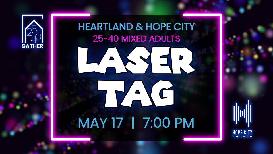 Join Heartland and Hope City at Laser City for some laser tag! There will be pop and snacks for everyone to enjoy. Space is limited so be sure to register early.
