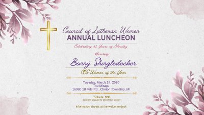 All women of COS are members of LWML and WOW. Come join us at our monthly meetings. We look forward to meeting you!