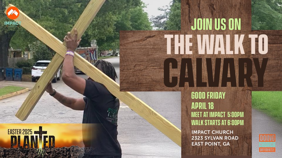 On Good Friday, we invite you to join us for a powerful and reflective Walk to Calvary. As we follow in the footsteps of Jesus, men will carry the cross while we walk behind, honoring the journey He took to the cross. We’ll meet at Impact Church and be shuttled to our starting point at the Walmart parking lot. Everyone is encouraged to wear black as we commemorate the solemnity of this moment. Together, we’ll walk, sing hymns, and reflect on the sacrifice made for us. This event is open to all athletic levels and ages. Come, walk with us in reverence and unity.