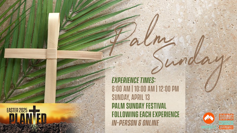 Join us for our Sunday Experience at 8, 10 and 12 followed by a Palm Sunday Festival.