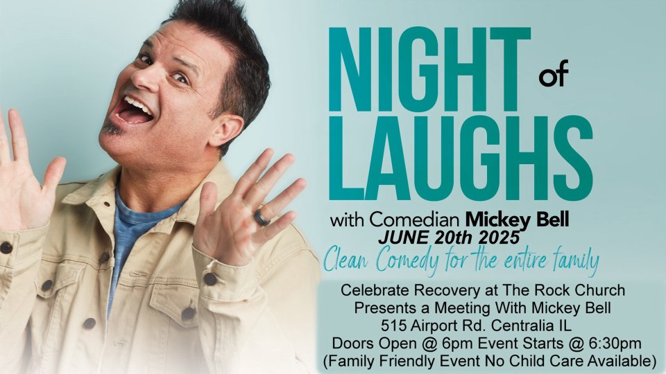 Celebrate Recovery of Centralia is hosting A Night of Laughs featuring Christian Comedian; Mickey Bell. This is a FAMILY FRIENDLY event, and is open to EVERYONE! There is no child-care, and it is absolutely FREE!