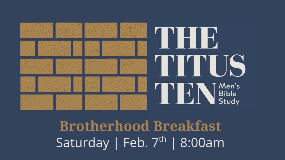 Brothers, join us on Saturday morning @ 8am for a good time of fellowship and food. We will continue working through the book the Titus Ten." Register today!