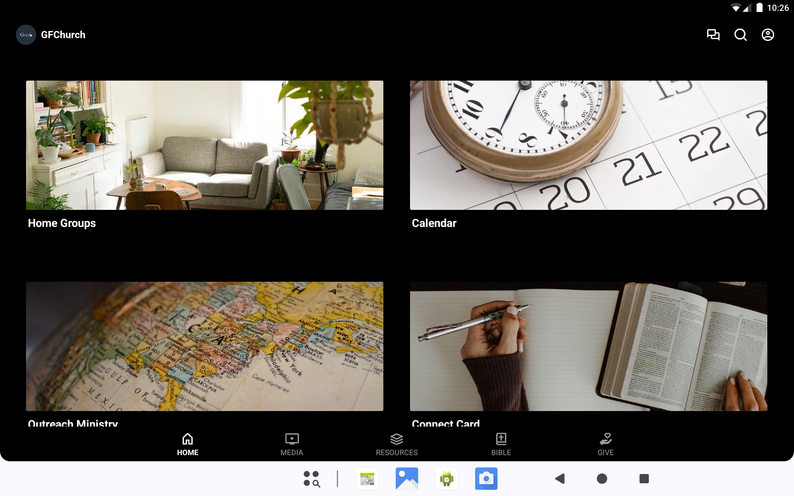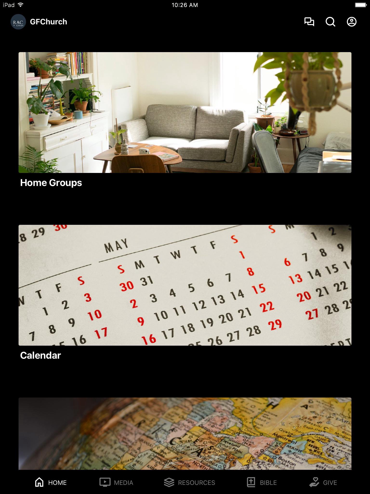 This app is a digital bulletin board and resource page for the songs, events, and other ministries of Grace Family Church in North Highlands, CA.