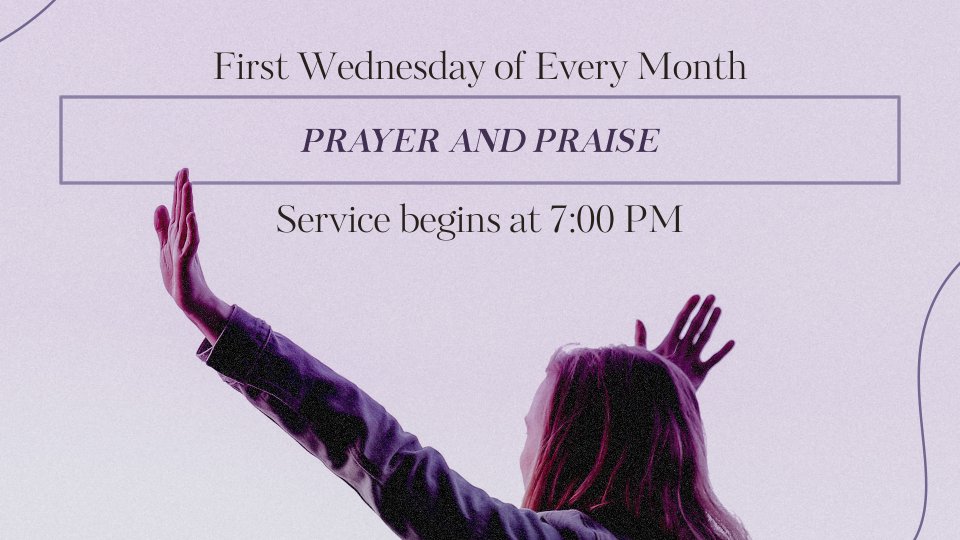 You're invited to this special Wednesday night service we set aside each month, to come together and Worship the Lord through Prayer and Praise.