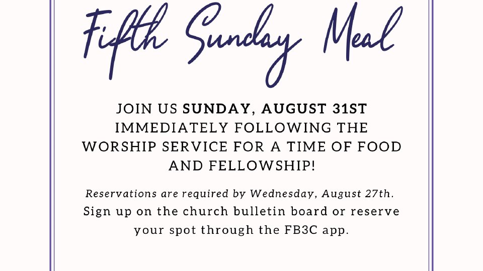 Join us Sunday, August 31st immediately following the worship service for a time of food and fellowship!