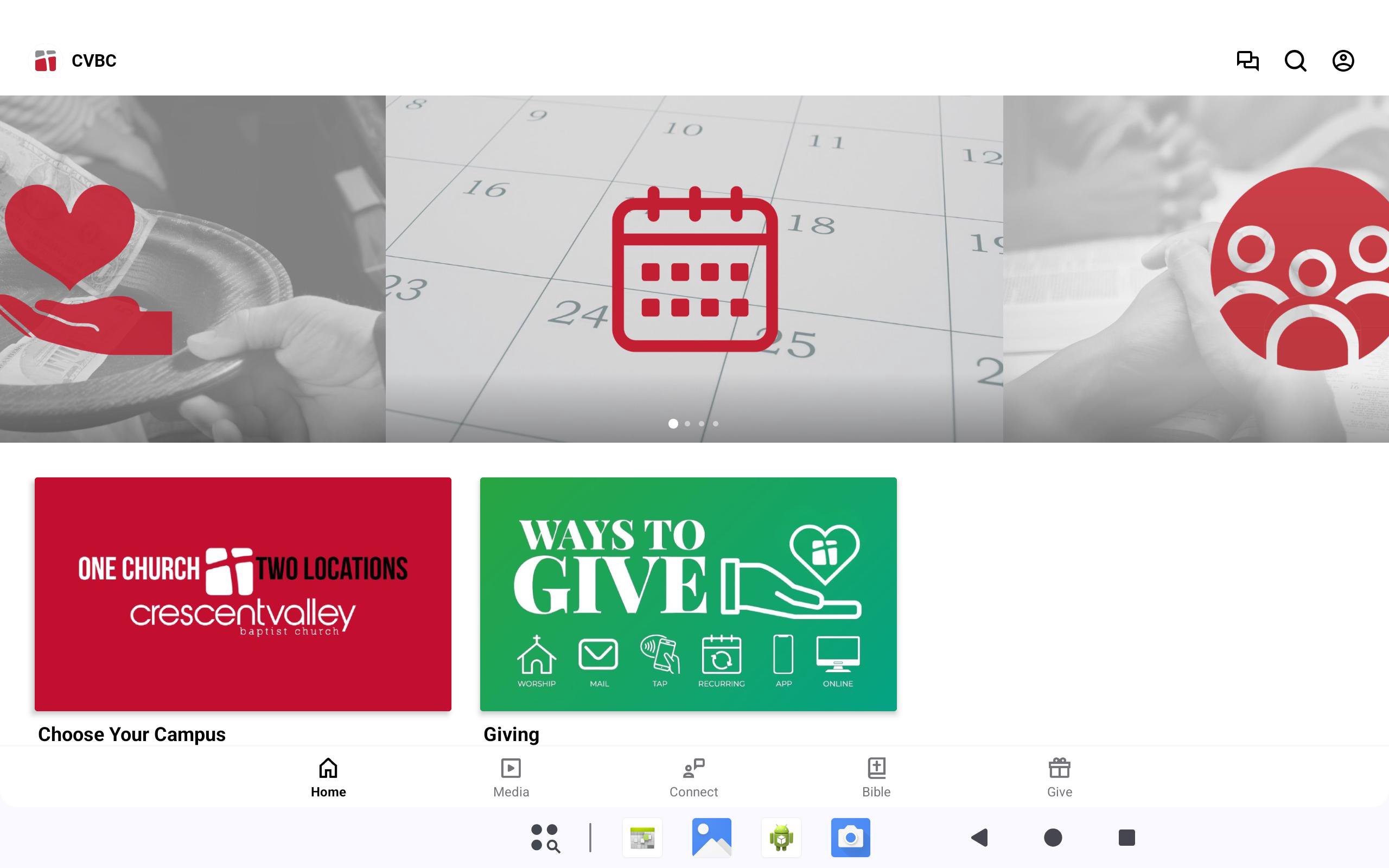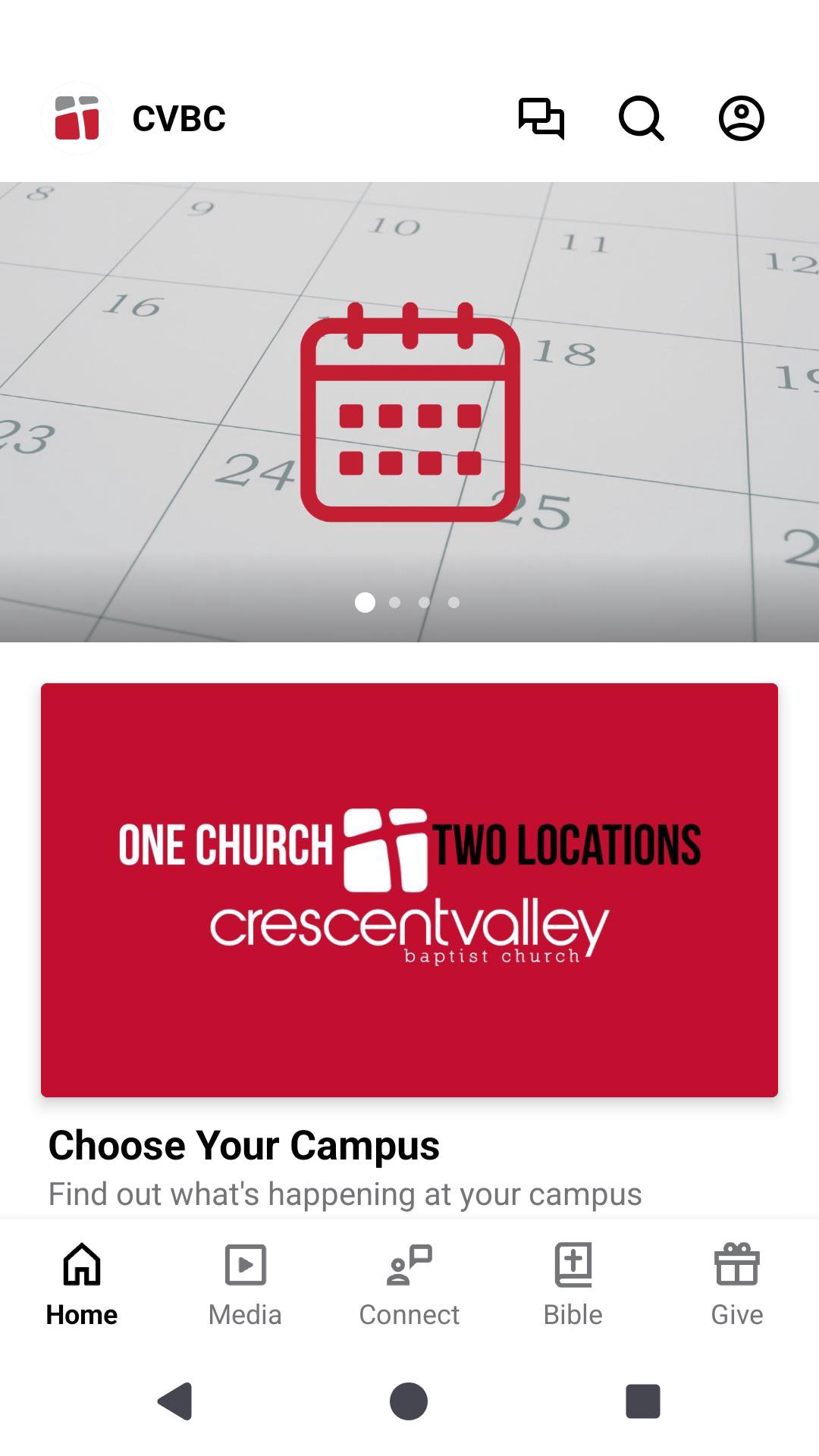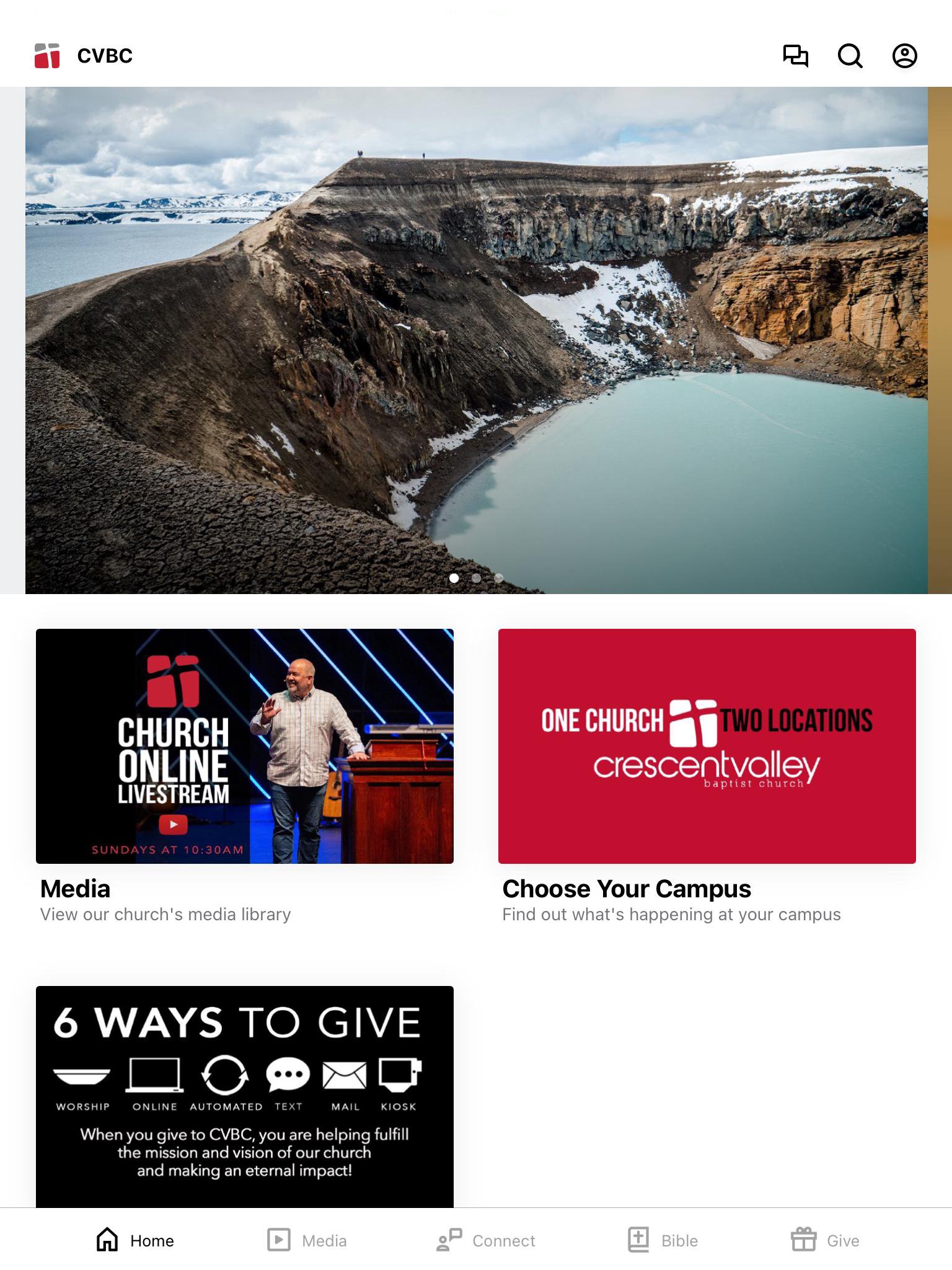 Download this app to connect with Crescent Valley Baptist Church. With this app you can: - Choose your campus - Watch or listen to recent sermons - Tune into a live stream when available - Read or listen to the Bible - Connect with us using our in app messaging - Sign up to serve/volunteer - Securely give donations