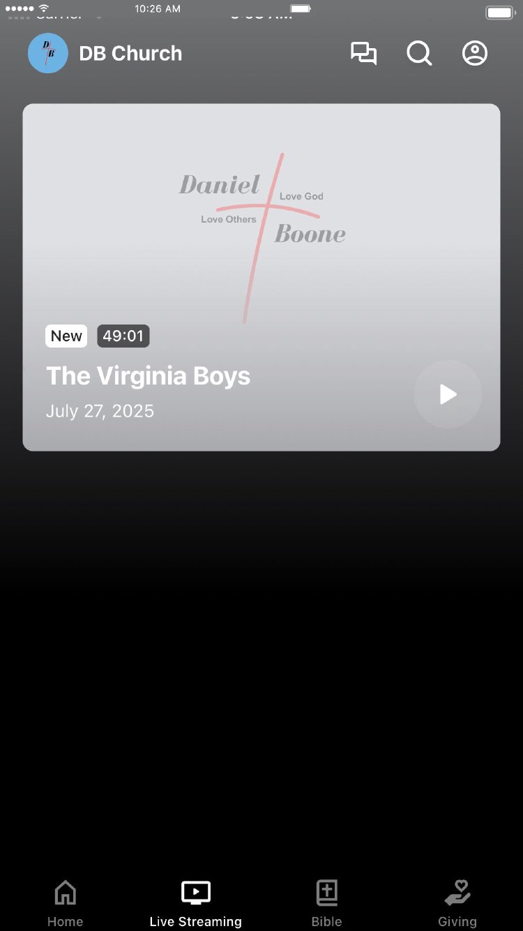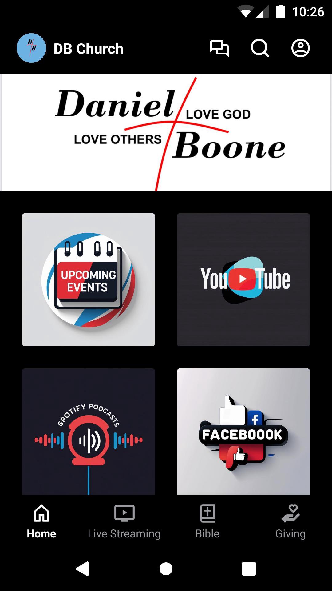 This app will help you stay connected with the day-to-day life of Daniel Boone Baptist Church. With this app, you can watch or listen to both live and past sermons, stay updated with push notifications, read the Bible, and view our calendar.