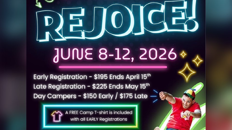 This year’s camp will feature dynamic services and engaging ministry from guest children’s evangelist Josh Combs, along with worship, games, activities, and memorable moments centered on God’s Word.