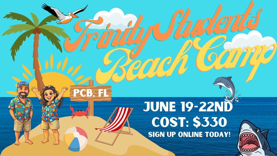 Join us June 19-22nd as Trinity Students attend "Strength to Stand" Summer Camp at Panama City Beach, FL! Students will experience great worship, teaching from God's Word, and tons of fun in the sun! We hope you will sign your student up for an unforgettable weekend! The total cost is $330 which includes lodging and all meals! $100 nonrefundable deposit is due at registration. The deadline to sign up and pay your balance in full is May 10th. Please contact John Michael if you have any questions!