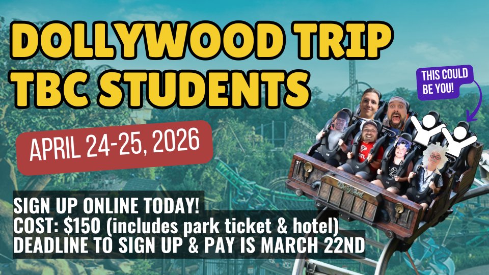 Join us as Trinity Students take a weekend trip to Dollywood! It will be a great weekend full of fellowship, fun, and rollercoasters! The deadline to sign up and pay your nonrefundable $150 for the trip is March 22nd!