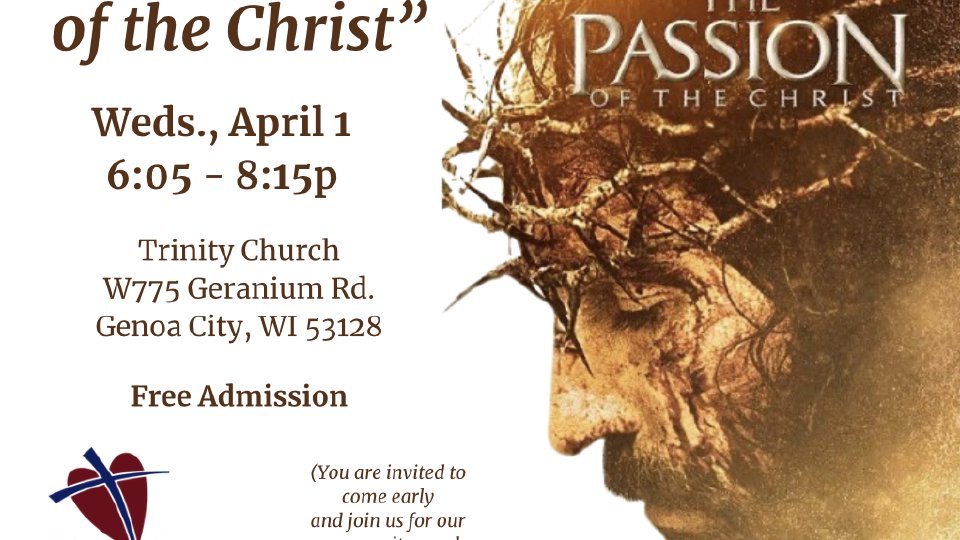 Join us this Holy Week for a special showing of "The Passion of the Christ". (Rated R).