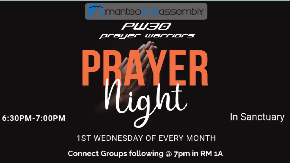 Prayer Warriors Arise! Come join the first Wednesday of every month for a corporate prayer night.