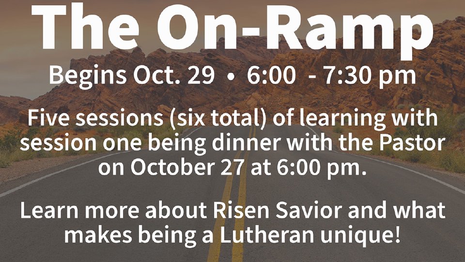 Are you interested in learning more about Risen Savior? Ready to make us your church home? Then this is the class for you! You will learn about Risen Savior, what makes a Lutheran unique and more! There are five session classes and then dinner with the Pastor. Contact the Church Office with any questions or to RSVP. We look forward to seeing you there!