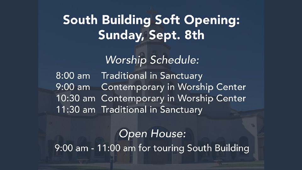 Join us as we welcome our Traditional Service worshippers back home! The building is still getting some of the details complete (should be fully done in November), but we will be back worshippers today. We hope everyone will join us regardless of what service you attend for an open tour of the building today and see what God has been working on at Risen Savior this summer!