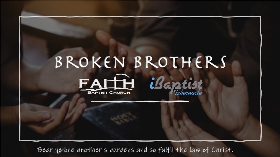 Bear ye one another's burdens, and so fulfil the law of Christ. This is what our churches need. Men who are willing to be transparent with their struggles together so that together in pursuit of Christ we can find healing for one another, for our homes, for our churches, and for our community.