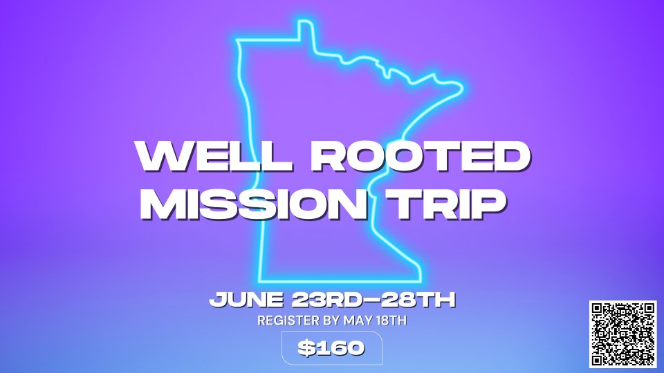 Well Rooted is headed to the 'Land of 10,000 Lakes' for a Mission Trip. We'll be serving a church in Rochester, Minnesota. Registration end Sunday, May 18th!