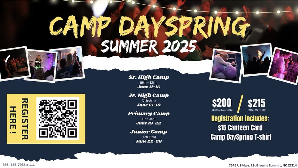 Camp DaySpring is a Christian camp located in beautiful Browns Summit, NC.