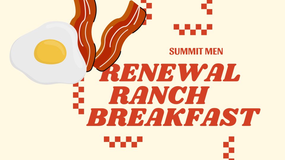 Summit Men, come join us on Saturday, March 21 to serve breakfast to the men of Renewal Ranch! This is a great opportunity for fellowship and showing them Christ's love.