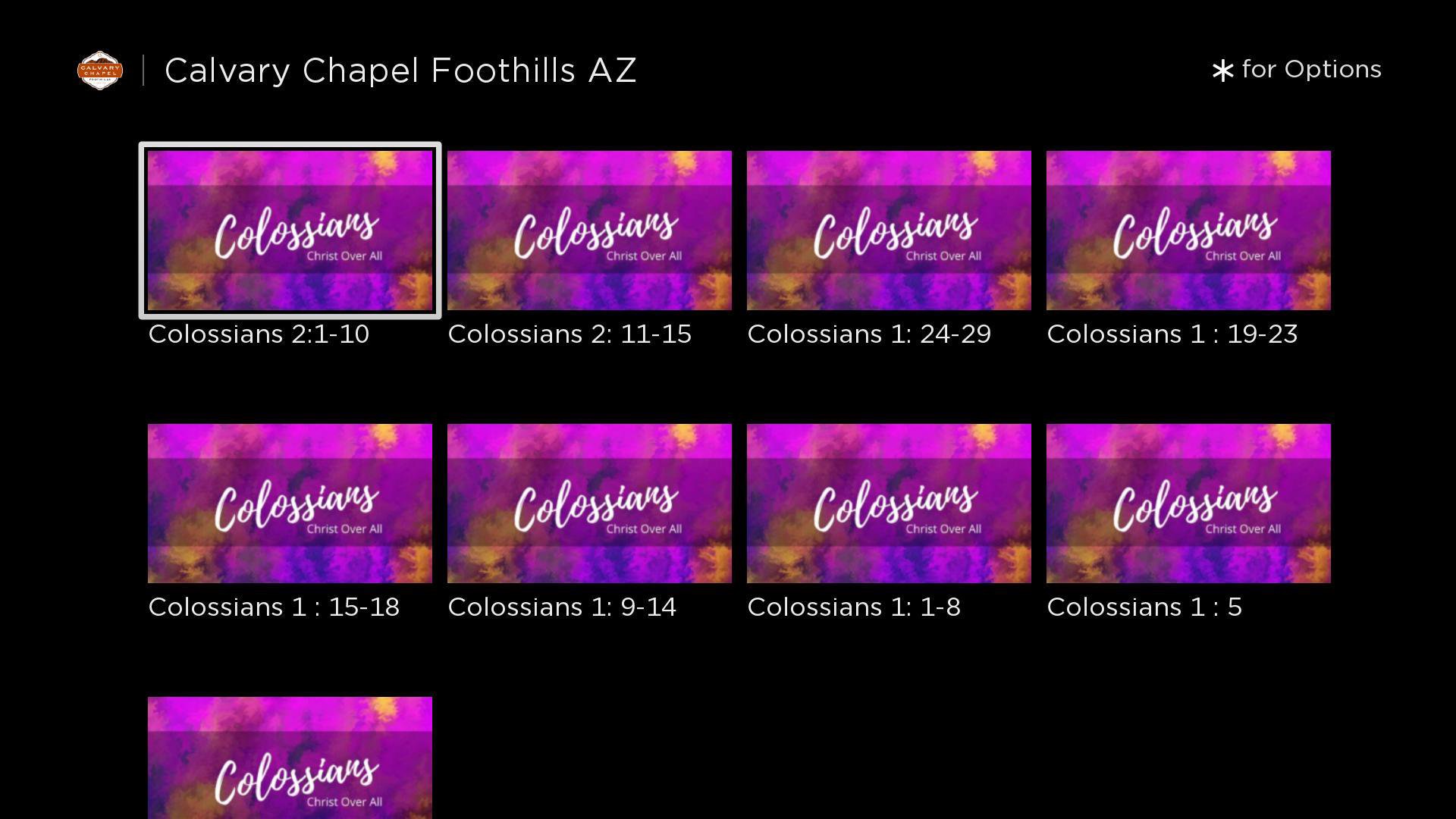Welcome to Calvary Chapel Foothills, this app will help you stay connect with the day-to-day life of our church. With this app you can: watch live, or a past message, stay up to date with events, receive push notifications of services and events, share messages via email, Facebook, download messages for offline listening, give on line.