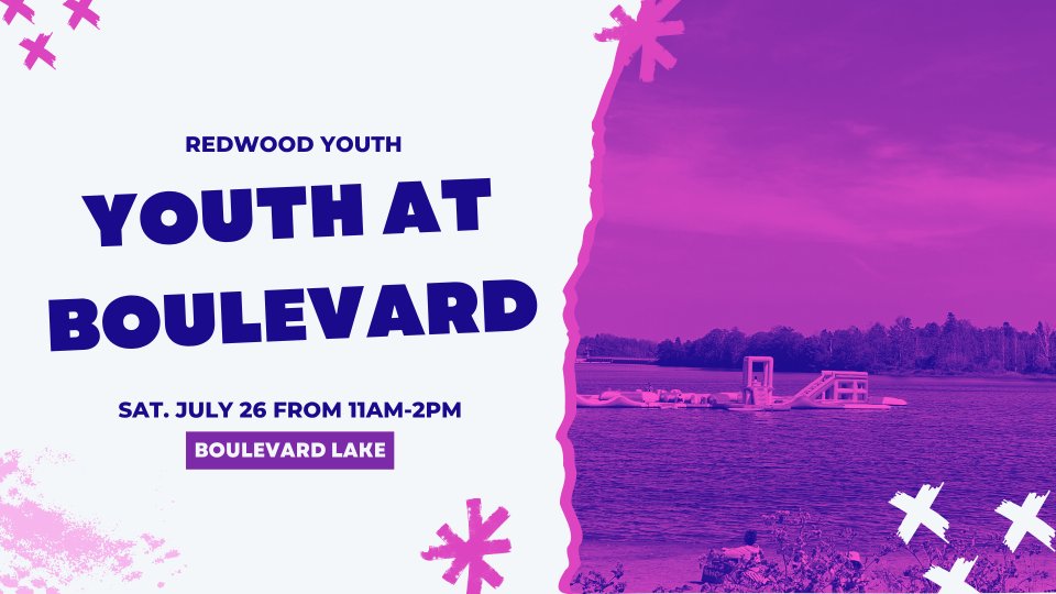 Join us at Boulevard Lake on Saturday, July 26 from 11am–2pm for a summer hangout by the water! We’ll have free food and drinks, lawn games, music, time to swim, AND the option to hit up the Splish Splash Waterpark just off the main beach (see info below)! Whether you’re diving in or just soaking up the sun, it’s going to be a great time together.