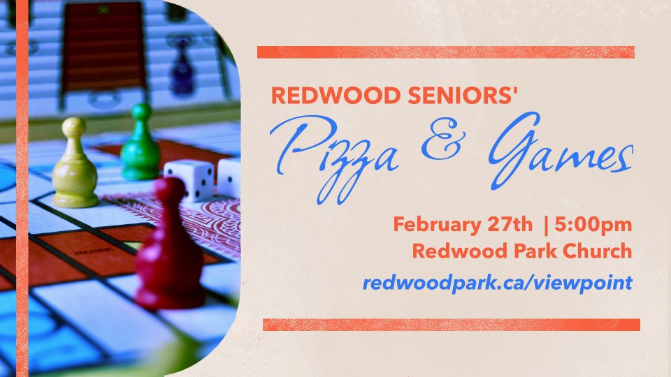 On Friday, February 27th at 5:00pm, the Seniors will be meeting at the church for pizza followed by an evening of board games.