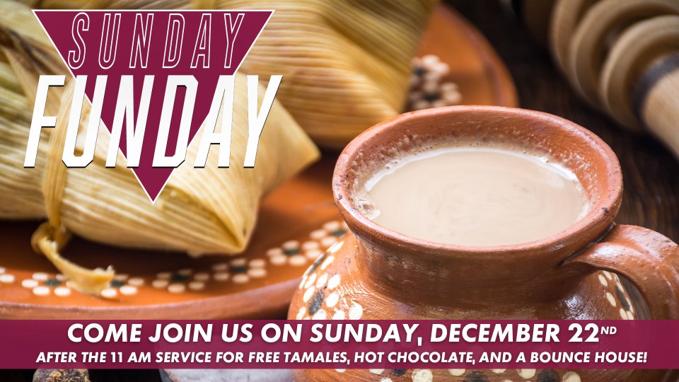 Do you love tamales and hot chocolate? Do they love bounce houses? Join us on the ERBC patio on Sunday, December 22nd after our 11 am service for tamales, hot chocolate, and a bounce house for the kids! It'll be an afternoon of fun as we fellowship together.