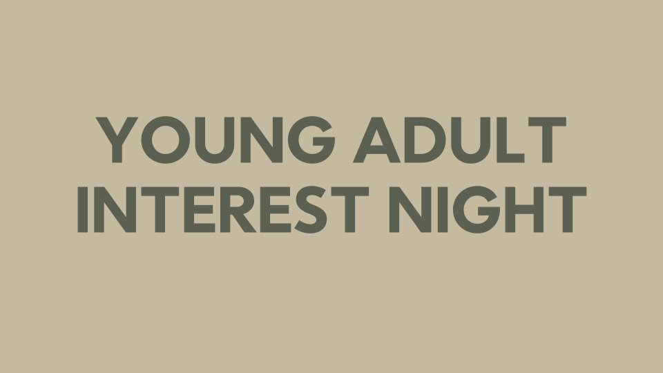 Join us for a young adult interest night on March 21st! This will be a chance to ask questions and get info on serving and groups before monthly gatherings launch in April. We'll meet at Admin Hall, across the parking lot from our Central Valley campus. We can't wait to meet you!