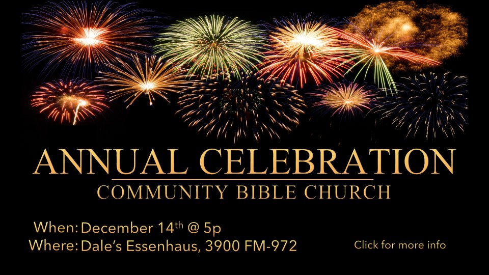 What a joy it is to celebrate another year together! Join us Sunday, December 14th at 5:00 p.m. at Dale’s Essenhaus for an evening of good food, fellowship, and gratitude for all God has done. We’ll look back at the past year, share stories of His faithfulness, and look ahead to the exciting things He has in store for our church family. It’s always a special time to laugh, reflect, and give thanks — we hope you’ll come be a part of it!