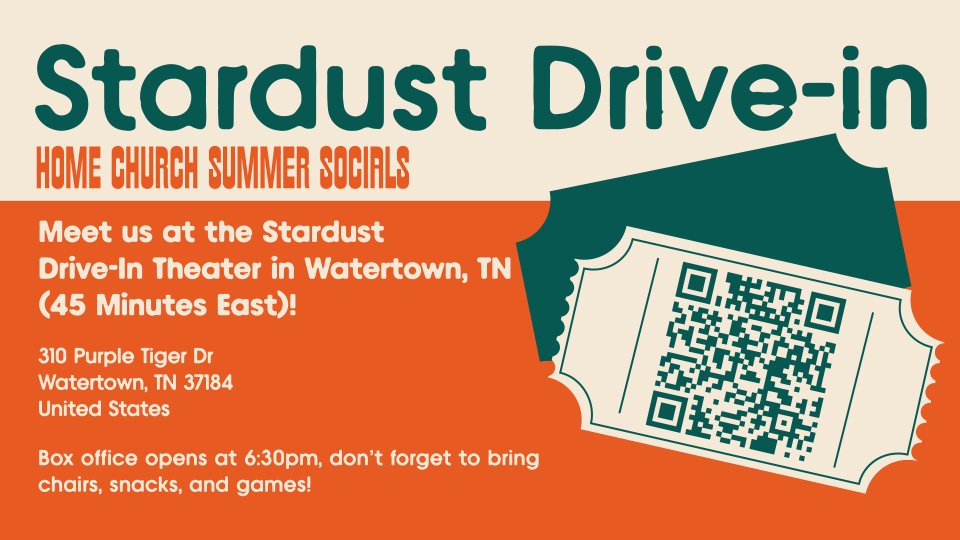 Home Church will be gathering at The Stardust Drive-in Theater in Watertown, TN (45 minutes east)!