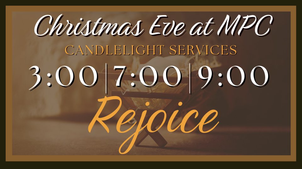 Rejoice with us this Christmas Eve as we celebrate the greatest gift the world has ever received, the birth of our Savior, Jesus! Come and experience the wonder of Christmas as we gather to worship in our newly renovated sanctuary! We will hold our first services in the new sanctuary this Christmas Eve! Service times are 3:00PM, 7:00PM and 9:00PM! Come celebrate the newborn King with us!