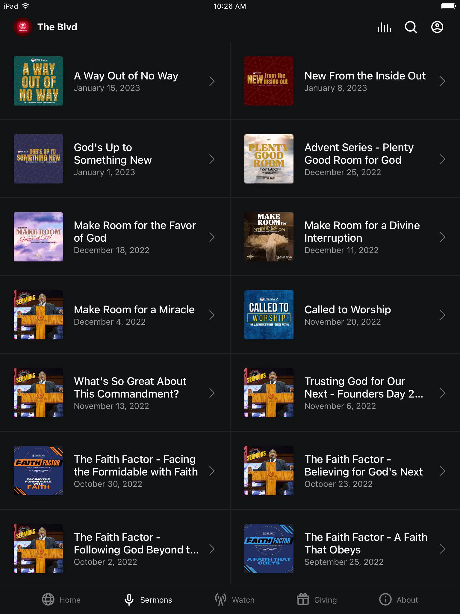 The Blvd app is your gateway to leading, learning and loving without limits. Use this app for the following: - Watch past sermons and messages -Stay informed of events and outreach opportunities -Read fresh content about growing the kingdom of God -Stay connected to your ministries and life groups