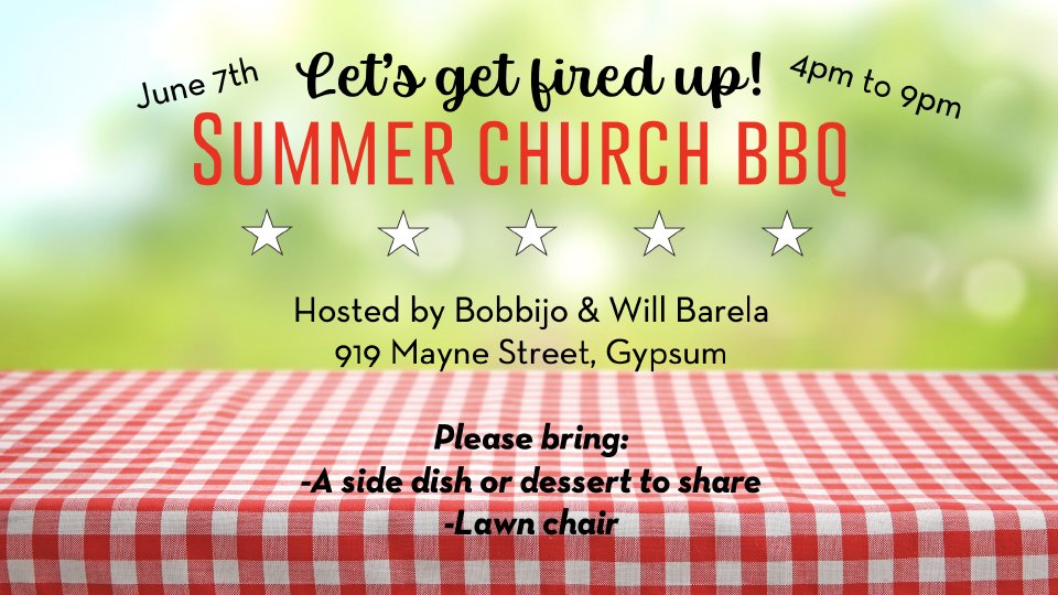 Join us for our Summer Church BBQ & Potluck, a joyful annual tradition filled with great food, fellowship, and fun for all ages! Bring a dish or dessert to share and enjoy a delicious BBQ spread in a relaxed outdoor setting. We'll kick off the afternoon with our annual kickball game, where all ages are welcome to play or cheer from the sidelines. There’ll be music, lawn games, and plenty of activities for the kids, including a bounce house. Whether you're new or a longtime member, come celebrate summer with your church family—there’s something for everyone!