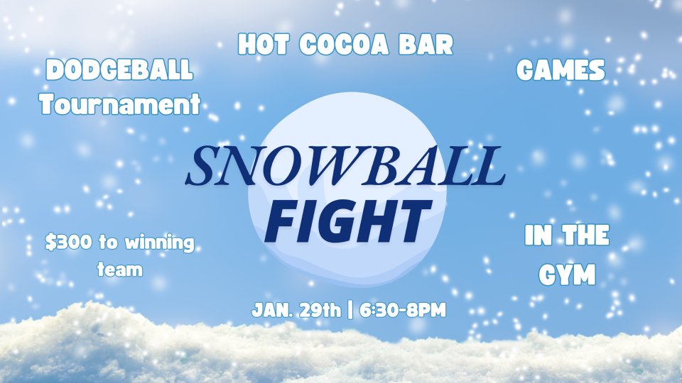 Dodgeball, Snowcones, and a whole lot more fun! Come enjoy a night of food, fun, and fellowship. Cash prize for winning team.