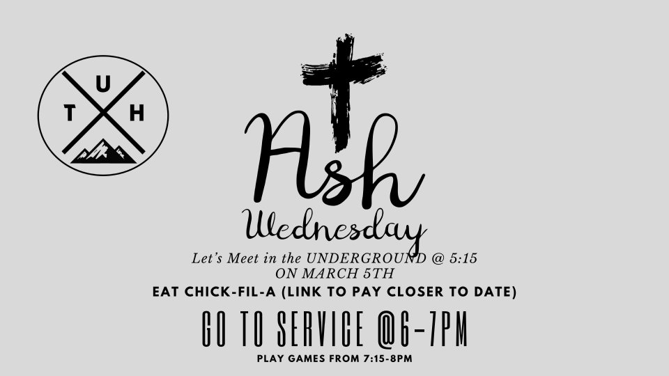 We will meet in the underground to eat chick-fil-a at 5:15pm before the lent service. All orders mush be in by 12:30 today (3/5/25)