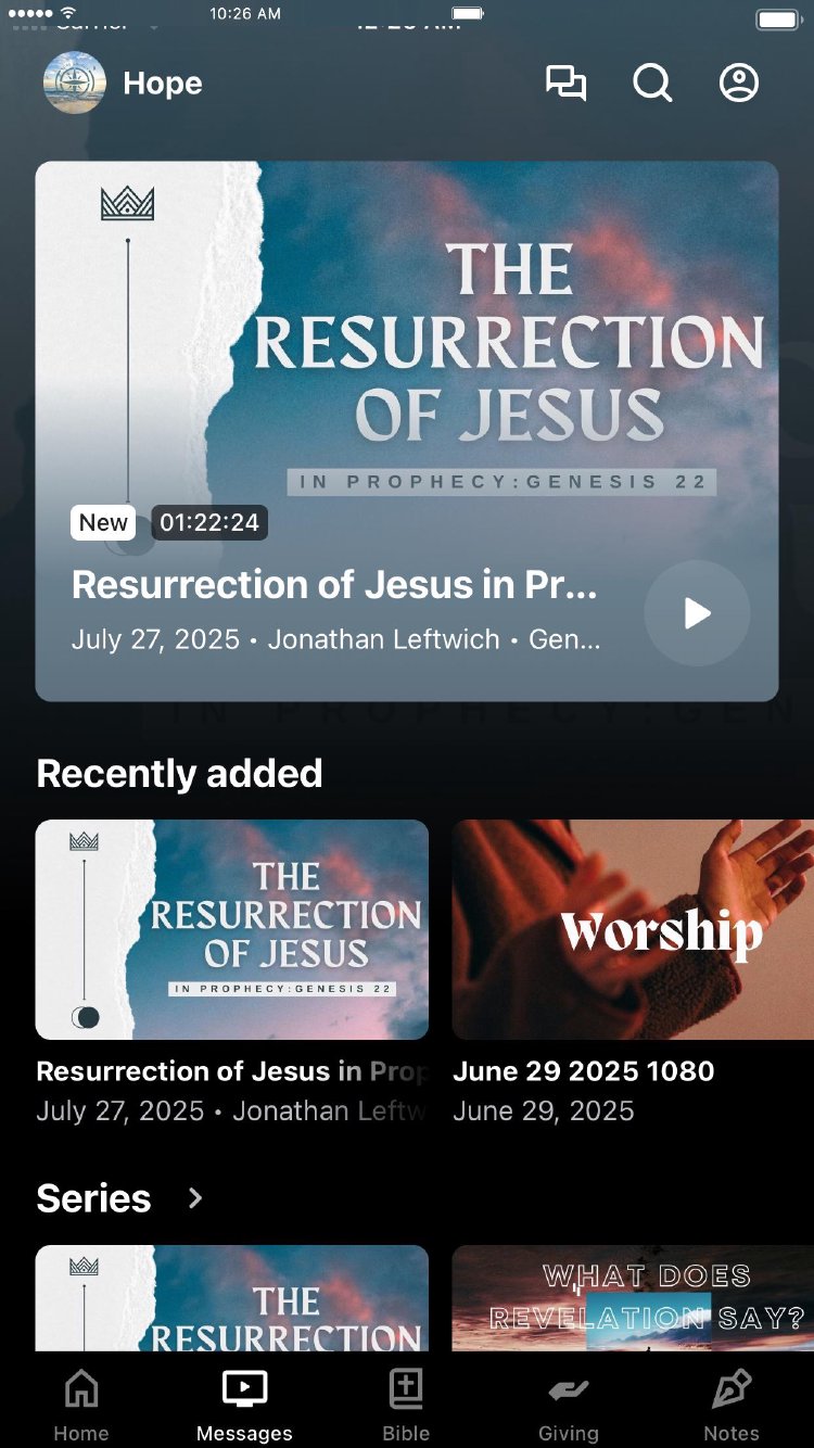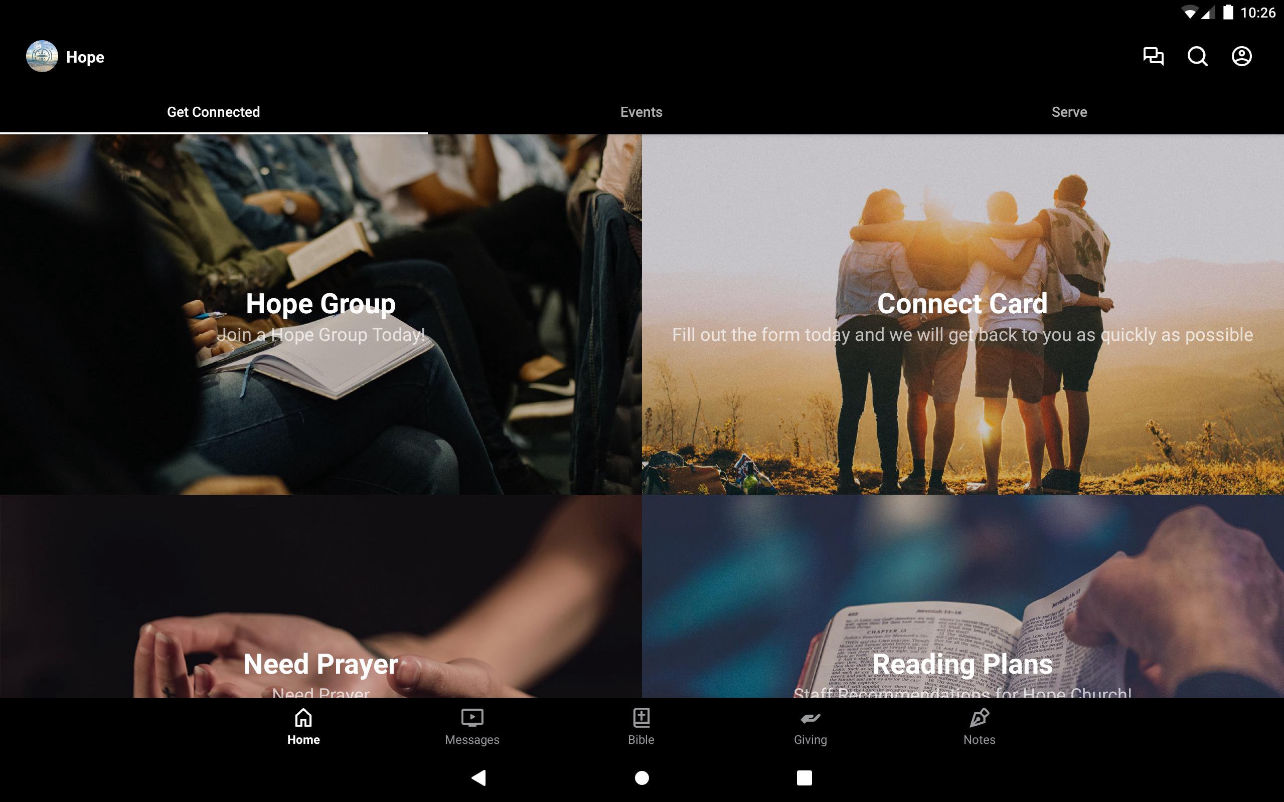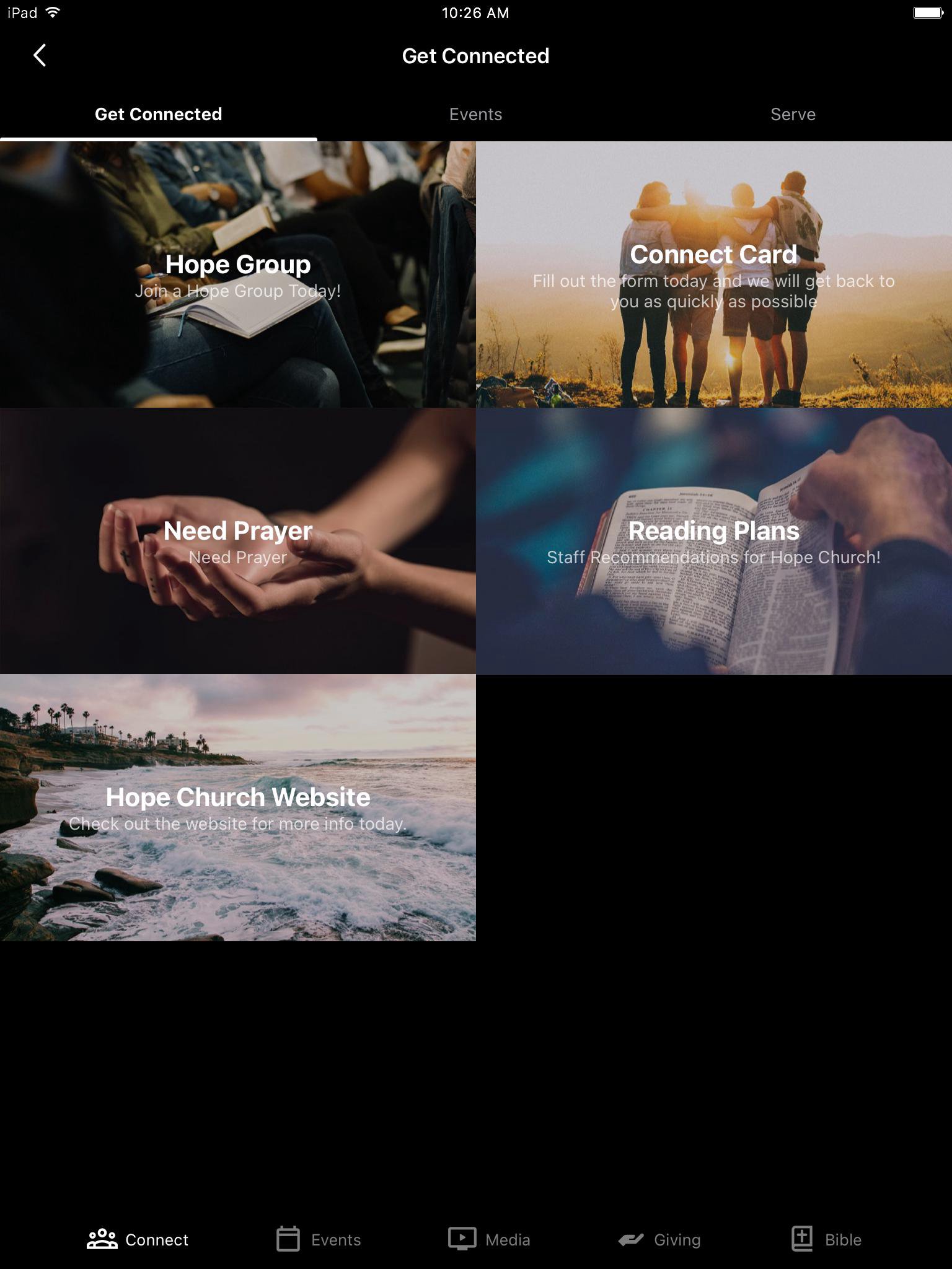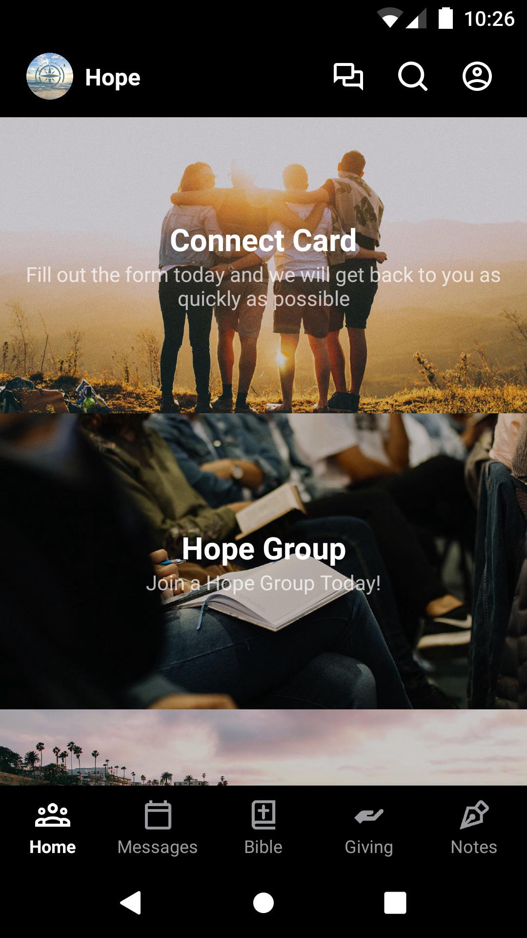 Welcome to Hope Church Rockport! This app will help you stay up to date with the day to day life of Hope Church Rockport. With this app you can watch or listen to past messages, stay updated with push notifications, read the Bible, view our calendar, give and sign up for events.