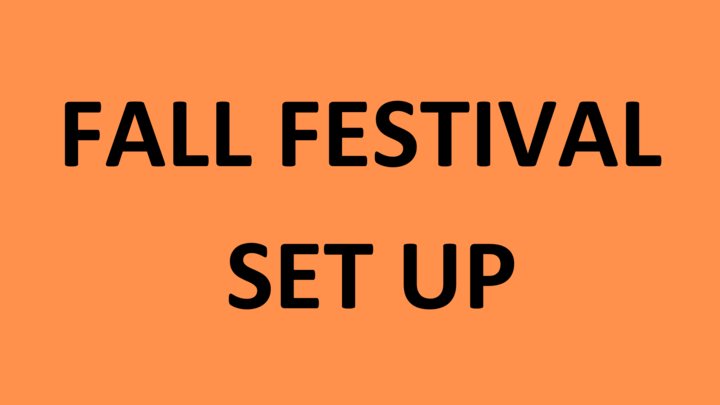 Stay after church on October 20 to help with Fall Festival Setup. A pizza lunch will be provided. There will be jobs for ALL ages, but we especially need men and a few trucks to be willing to stay.