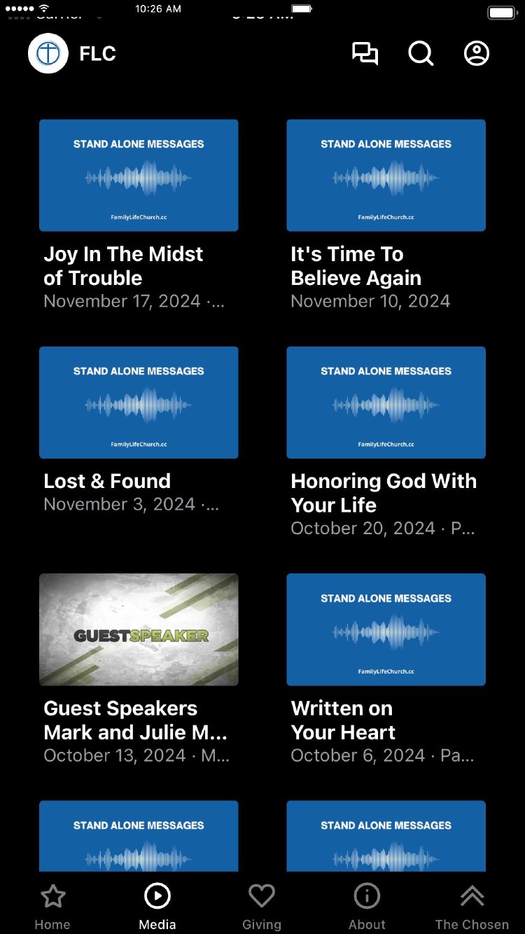 Family Life Church exists to help people Know God, Find Family and Make a Difference. Our mission is to lead people to a living Jesus! Stay connected with FLC wherever you go! This free resource allows you to experience messages on-demand, access information about the church, our location, give online and more! For more information about our church, please visit us on the web at http://familylifechurch.cc