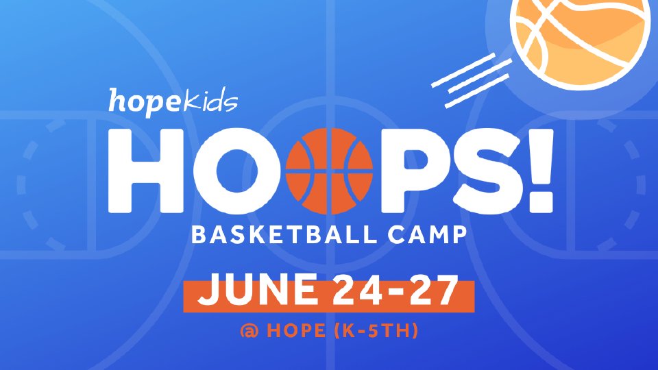 Hoops! is a Basketball Camp for kids in K-5th grades. We will challenge and encourage your kids to improve their skills in basketball and in life while having tons of fun. Whether your kids have never dribbled a basketball or play all the time, this camp is for them. Hoops will be held June 24th-27th from 6:00-7:30PM each evening!