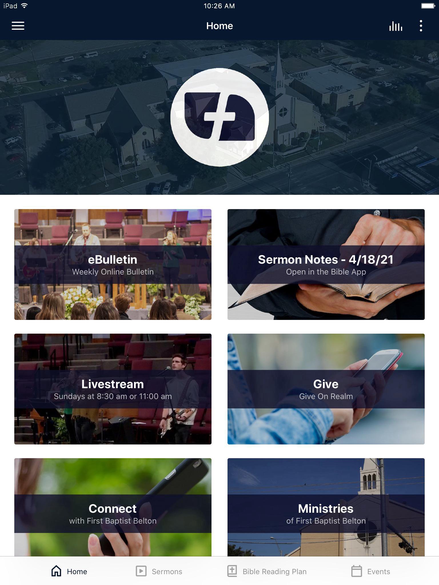 This FREE app contains many interactive features that you will find useful. - Weekly eBulletin - Sermon notes - Bible Reading Plan - Interactive Prayer Wall - Online Giving - Livestream - The latest sermons (video & audio) - Upcoming event information - Ministry-specific information and sign-ups - Group-specific notifications Download today!