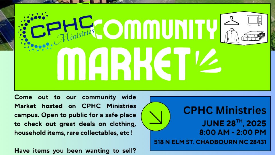 Come out to our first annual CPHC Community Market for a safe space to buy OR sell lots of great household items.