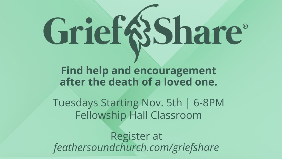 GriefShare is a grief recovery support group, a safe place where hurting men and women can find hope and healing after the death of a loved one. Our support group ministry is facilitated by dedicated volunteers from Feather Sound Church who have experienced and understand the heartache of grief. The group time consists of videos, discussion, and participant workbooks that guide group members through each session. The 13 videos feature respected Christian counselors and teachers who share insights and testimonies of God’s mercy and grace, plus personal testimonies from people who have experienced the loss of a loved one. GriefShare 13-week series begins 11/05/24 to 2/11/25 and will meet in the fellowship hall classroom at Feather Sound Church from 6:00pm to 8:00pm. Mary Anderson is our GriefShare lead representative at Feather Sound Church.