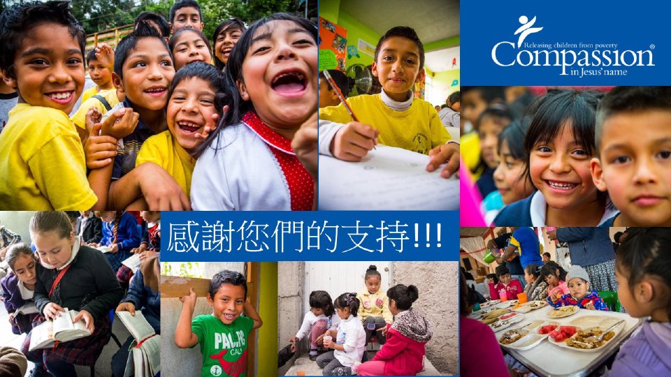 感謝兄姊的慷慨,透過 Compassion Canada,已有288個兒童被助養,為孩童提供教育、衛生保健、和屬靈輔導,幫助改變他們的生命及帶給他們盼望。感謝你們在世界各地成為耶穌的手和足。讓我們繼續一起努力,作出改變。