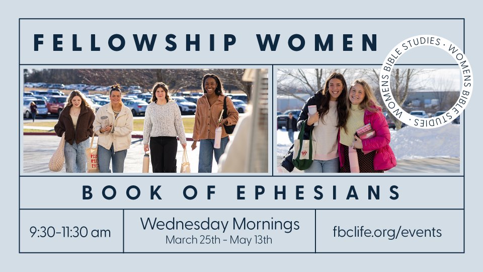 Join us on Wednesday mornings, March 25th-May 13th, for a nine-week walk through the book of Ephesians. We will not only study scripture together, but explore your place in God's plan! If you've never been in a bible study before, this is a great place to try it out with a group of women who are fun, encouraging, and who love Jesus! We hope you'll hop in! The cost of your book is $6 and is due at the time of sign-up. Childcare is available, but spots are limited.