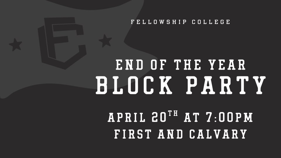 Join us for our End of Year Block Party on Monday, April 20th, as we celebrate the final Monday night gathering before summer break! Right after our Monday night meeting, we’ll head to the parking lot across from First & Calvary for a fun night together. We’ll have pizza, a drink truck, an ice cream social, music, and plenty of yard games to hang out, laugh, and celebrate the year. It’s a great chance to relax, spend time with friends, and wrap up the year together before summer begins.