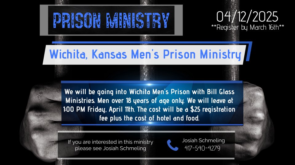 A team from The Canopy will be ministering with Bill Glass Ministries at Wichita Kansas Men's Prison. We would for men over 18 years of age to join us for this ministry opportunity.