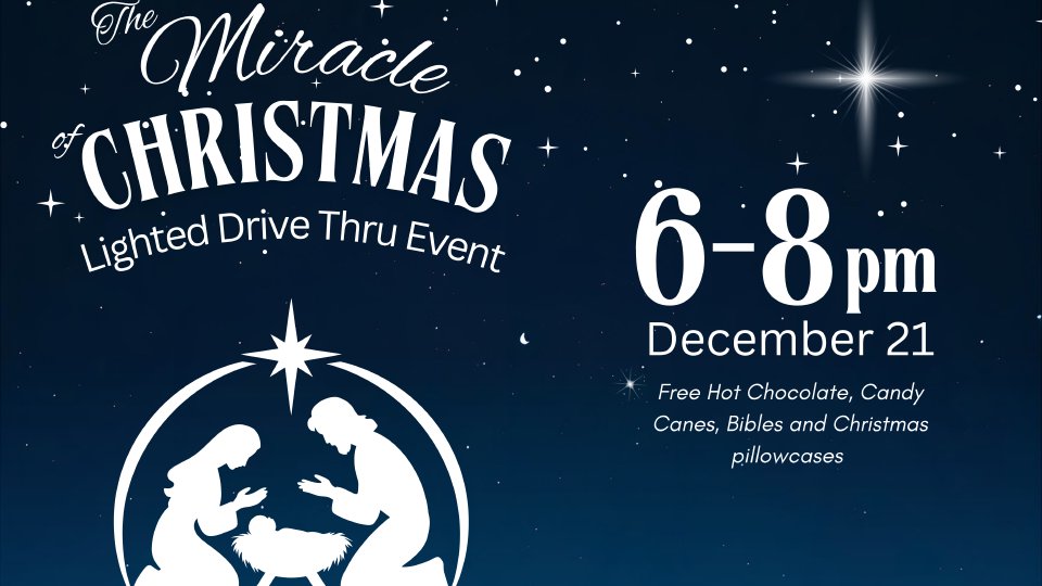 Load up your family and friends, turn on your favorite Christmas music and head to Community Chapel to drive through our lighted event. Stay in your car while our volunteers serve you hot chocolate, cookies, candy canes, pillowcases for kids 12 & under and "Searching for Christmas" books. Enjoy the lights and decorations as you "drive through" the Story of the Birth of Christ. Discover the Miracle of Christmas!