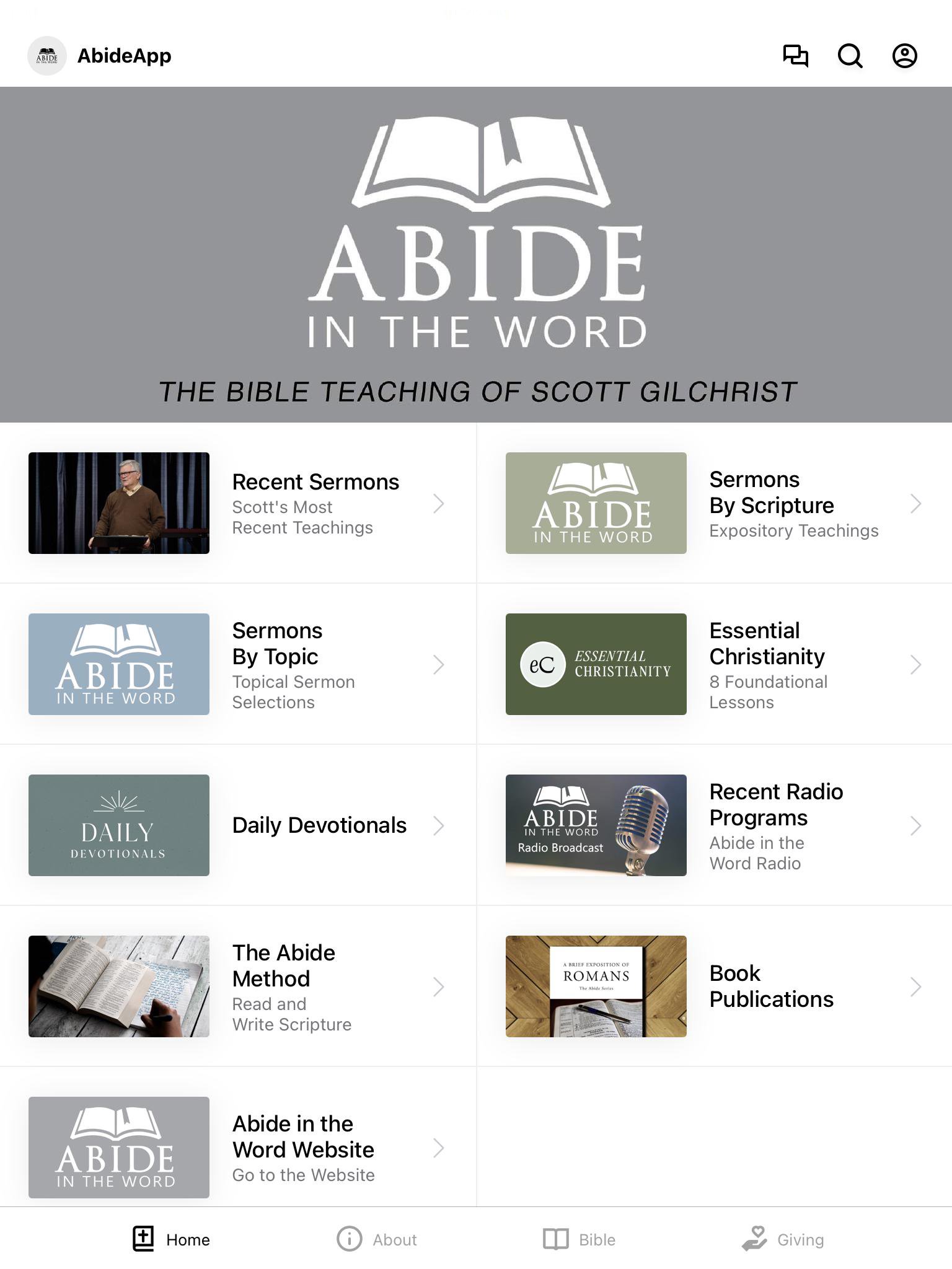 Use the Abide in the Word app to connect to Christ-centered teaching and reading plans to help know Jesus and make Him known. Abide is a ministry of Southwest Bible Church and Pastor Scott Gilchrist whose purpose is to bring clear, Christ-centered Bible teaching to the state of Oregon and beyond. Listen to its radio programs and digital podcasts.
