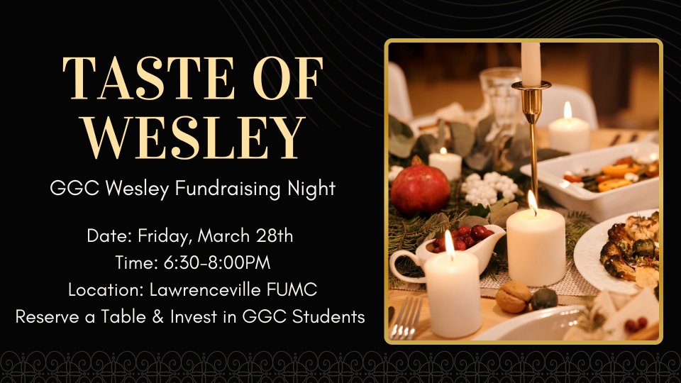 Join us for Taste of Wesley, a special evening of fellowship, worship, and celebration as we share the impact of GGC Wesley and our mission to serve students at Georgia Gwinnett College!